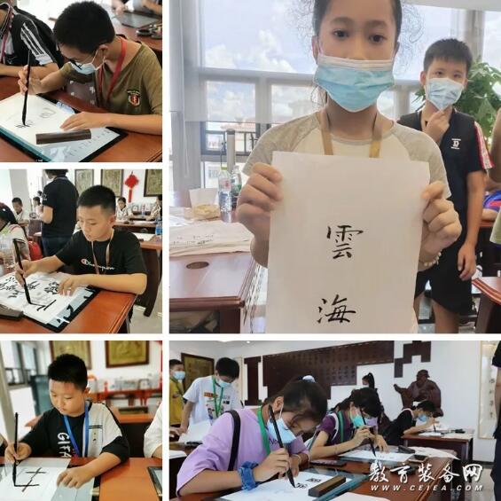 走進智慧書法教室,每張課桌上都有液晶顯示屏,可以顯示不同風格的字體以及漢字的筆畫順序、用力方向等知識點,方便學生臨摹和練習。這不,孩子們拿起毛筆,在電腦上有模有樣地書寫起來了。