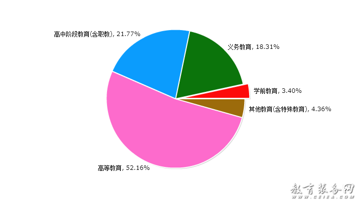 根據教育部的相關劃分,教育裝備網將教育范圍具體設置為學前教育、義務教育、高中階段教育(含職教)、高等教育、其他教育(含特殊教育)。