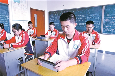 10月12日,河北省威縣一中的學生在使用“智慧課堂”電子設備學習。王麗亞 攝
