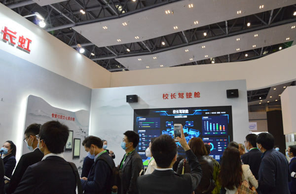 本屆展示會,長虹教育攜校長駕駛艙、云上校園解決方案、三個課堂、研討型教室、常態化智慧課堂等產品解決方案亮相現場。