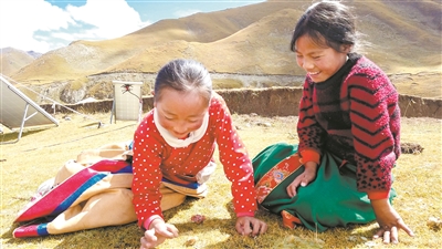 青海省玉樹(shù)藏族自治州治多縣多彩鄉(xiāng)寄宿小學(xué)學(xué)生在課后玩藏族民間游戲“耍羊骨拐”。本報(bào)記者 單藝偉 攝