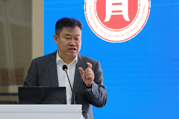 隨后,廣東省民辦教育協會民辦高校聯席會秘書長周二勇作廣東省民辦教育協會2020年工作總結報告。