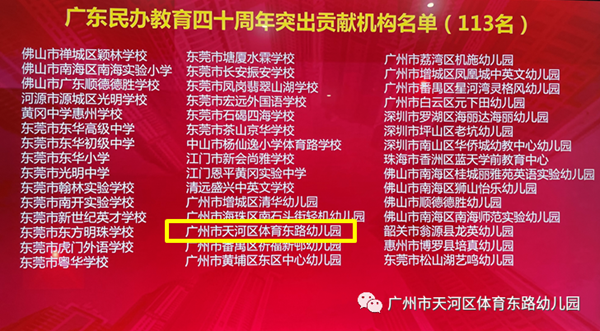 同時(shí),廣州市育星幼兒教育集團(tuán)吳親平總經(jīng)理和廣州市天河區(qū)體育東路幼兒園顧安安園長(zhǎng)受邀參加廣東省民辦教育協(xié)會(huì)年會(huì)暨廣東民辦教育四十周年“突出貢獻(xiàn)人物、機(jī)構(gòu)”表彰大會(huì)。