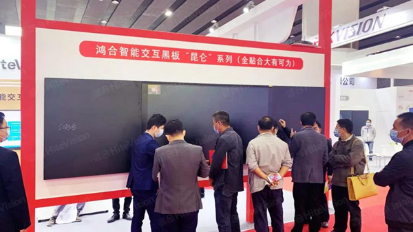 走進鴻合展區,兩款鴻合智能交互黑板吸引了眾多參觀者的目光。鴻合智能交互黑板“泰山”系列,采用全貼合工藝及納米電容觸控技術,將高品質防眩光鋼化玻璃面板與觸摸屏完美融合,可視角度達178°,即使強光之下,學生坐在角落仍可清晰看見黑板上的顯示內容。