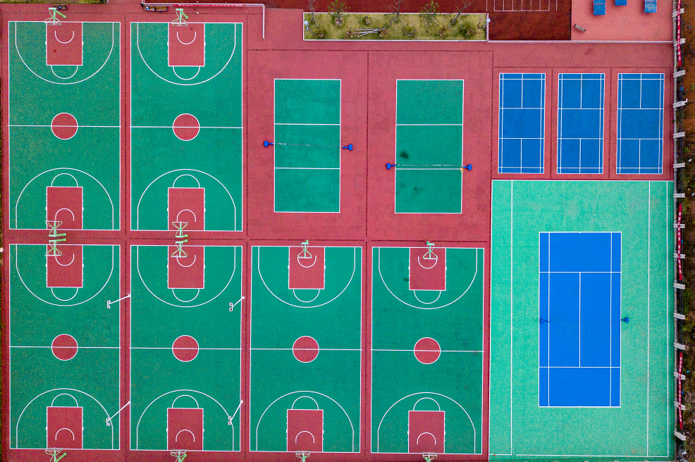 南湖新城學(xué)校綜合球場的建設(shè)原材料及施工技術(shù)均由廣州帝森DISEN提供支持,項(xiàng)目總面積約為4544㎡,包括籃球場、排球場、乒乓球場和網(wǎng)球場。