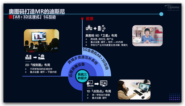 從最初的1D,到2D,遠(yuǎn)程教育不斷的發(fā)展,5G的到來(lái),AR技術(shù)的不斷成熟,升級(jí)/優(yōu)化智慧化教育體系勢(shì)在必行,奧圖碼立志打造MR的迪斯尼,帶大家進(jìn)入9D智慧教育時(shí)代,具體細(xì)節(jié)將在本次論壇演講中進(jìn)行揭秘。