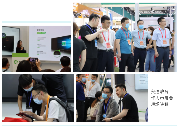 針對不同的需求,安道教育展位(D1023)分為主講區、育益課堂、校園管理平臺、物聯集控、大數據平臺、工業產品線等多個展區,且各個展區彼此連通、各具特色,多維度共同展現出安道教育以科技賦能教育新成果,呈現適用于多遠教育應用場景的信息化教學設備和專業解決方案�,F場觀眾可自由探索、親身體驗,也可通過聆聽工作人員的專業講解,多方式深入了解安道產品特性,創造沉浸式體驗氛圍。