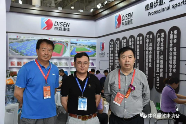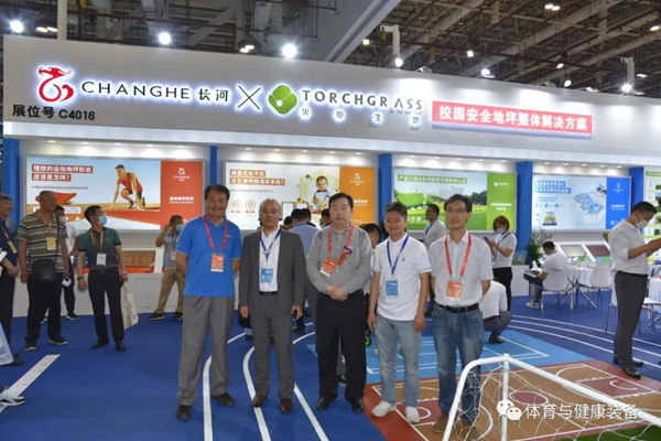 中國教育裝備行業協會副會長、學校體育裝備分會理事長唐勤勇及秘書處到參展單位展位參觀考察。