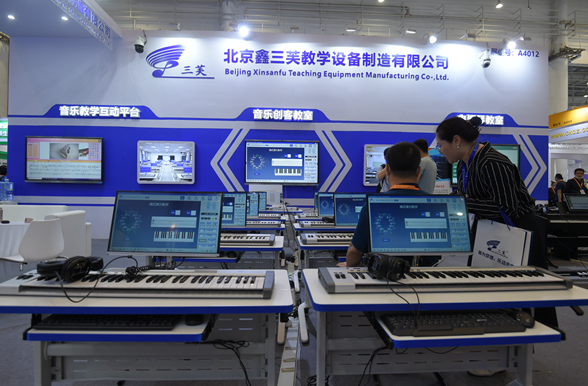 鑫三芙攜音樂創(chuàng)客教室、五線譜電教板、音樂教學(xué)互動平臺等產(chǎn)品亮相本屆展會。