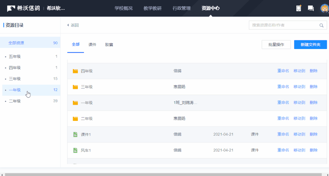 資源目錄支持同級移動,文件夾可根據實際需求進行新建、移動、刪除和重命名
