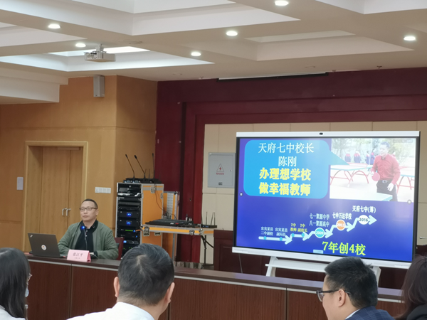 隨后,張江平校長對天府七中的建校理念、建校過程、教育成果和經驗做了生動的分享。