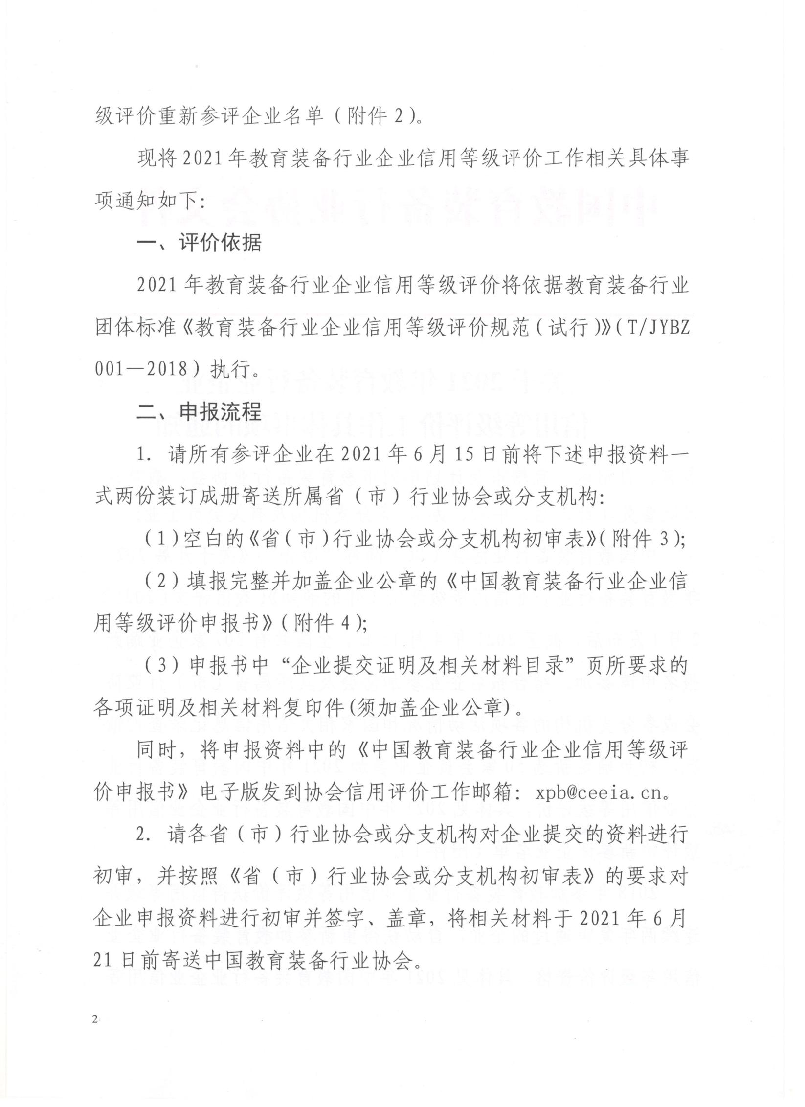 現將2021年教育裝備行業企業信用等級評價工作相關具體事項通知如下: