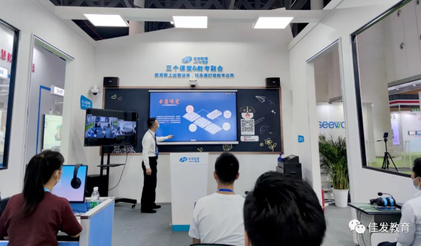 本次展會,佳發教育與華為強強聯合,共同展出高校課堂生態解決方案。本方案以攝像機為基礎,智能一體機為輔助,通過AI識別、大數據可視化分析,對課堂中師生行為進行精準化分析,輸出師生考勤、到課率、專注度等數據,高效助力高校學員、學院管理,輔助專業決策,實現高質量教學。專業認證評估、課堂生態四川高校智慧校園成果展區