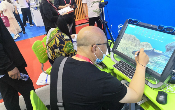 基礎教育領域的小學科學探索課程資源、初高中理化生實驗資源、海洋生物、紅色教育展館等內容讓參展觀眾眼前一亮。河南某小學的一位校長觀看了生命科學模塊中蠶的模型,她表示”我在顯微鏡下都沒有看到這么清楚過,蠶的蠕動非常逼真、直觀和形象。”有業內知名人士也表示,也未艾帶來的小學科學VR課件直觀、形象,符合小學生的認知規律!