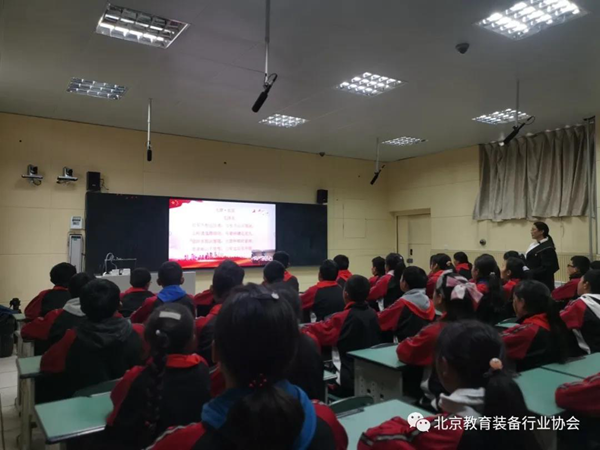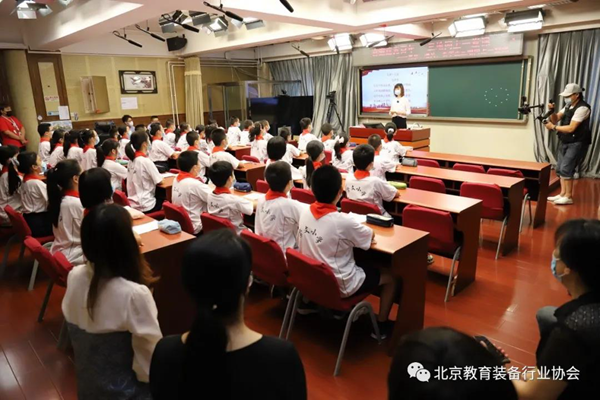從遵義到瀘定橋再到天安門,三地師生共學(xué)互動,共同呈現(xiàn)一堂高質(zhì)量的黨史學(xué)習(xí)課程。在北京參加聽課的領(lǐng)導(dǎo)有:北京市教育技術(shù)設(shè)備中心副主任兼北京教育裝備行業(yè)協(xié)會會長柴旭津,北京教育裝備行業(yè)協(xié)會副會長兼秘書長陳謙、東城區(qū)教育技術(shù)裝備中心主任崔保民,崇文小學(xué)校長白淑蘭、黨支部書記李月華等。