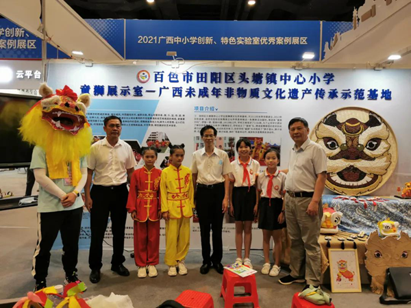 由廣西教育廳主辦的2021廣西中小學(xué)創(chuàng)新、特色實(shí)驗(yàn)室優(yōu)秀案例展區(qū)的展位個(gè)個(gè)都布滿(mǎn)了民族特色,有壯、瑤,苗、侗等多個(gè)民族展位,參加本屆優(yōu)秀案例的縣(區(qū)丿學(xué)校有49個(gè),布展主要內(nèi)容有童獅、壯族蜂鼓、侗族木構(gòu)手工、剪紙、金絲沙畫(huà)等民族項(xiàng)目。