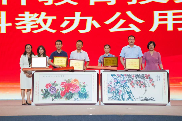 中國(guó)教育裝備行業(yè)協(xié)會(huì)城市教育裝備工作委員會(huì)秘書(shū)長(zhǎng)許原芝(中)、遼寧省教育裝備行業(yè)協(xié)會(huì)秘書(shū)長(zhǎng) 翟晗(右一)