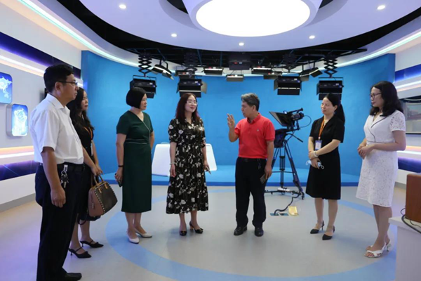 教育部教學(xué)裝備研究與發(fā)展中心科研處處長(zhǎng)劉強(qiáng)(左三)、廣西教育技術(shù)和信息化中心主任肖榮亮(右二)、副主任陳軍(右一)