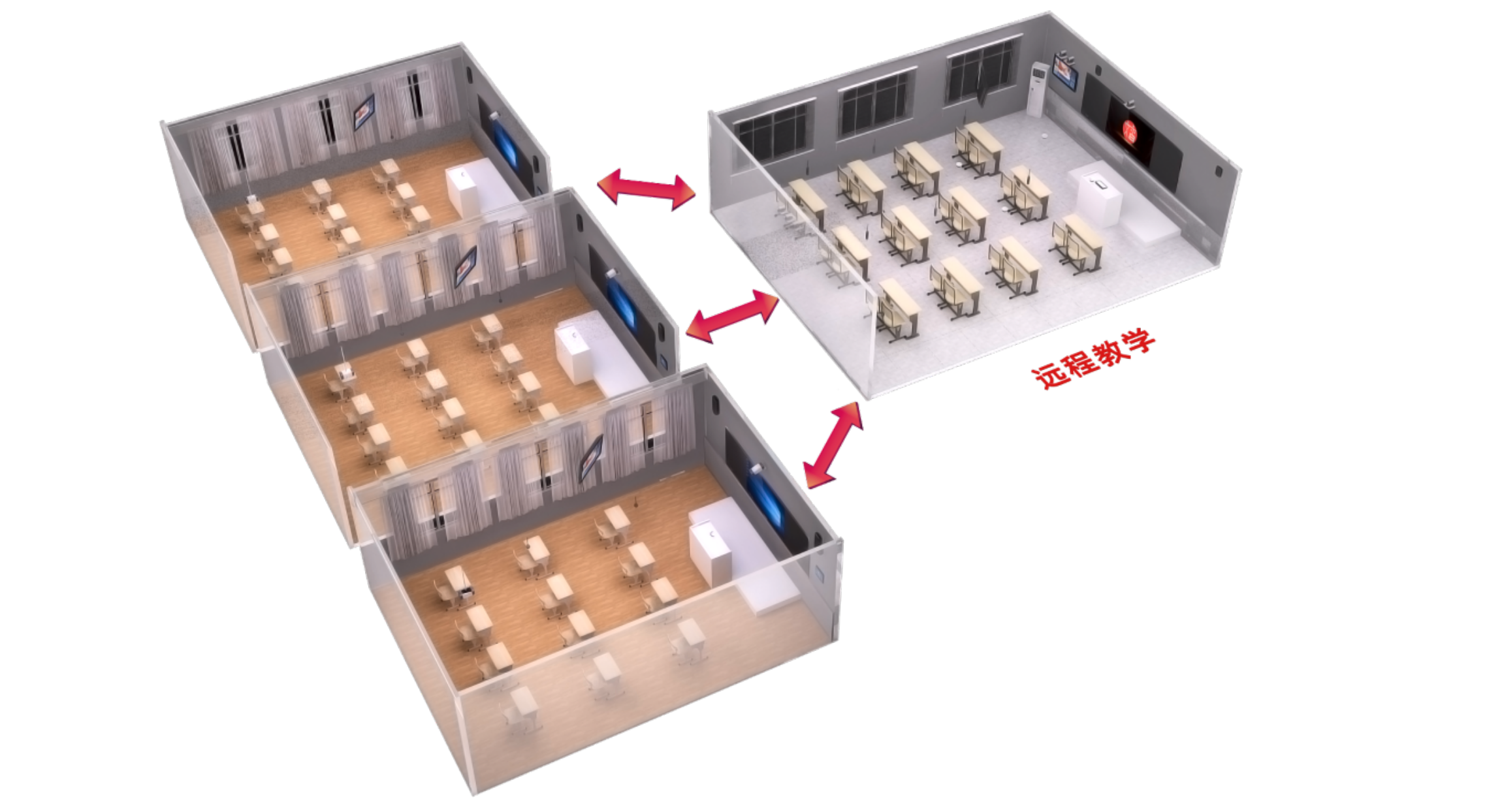 利用自動導播、常態化錄播、自動上傳等功能,多場景、多景別地將互動教學(包括教學課件)、教學研討等教育資源適時共享,并無縫對接省市平臺。