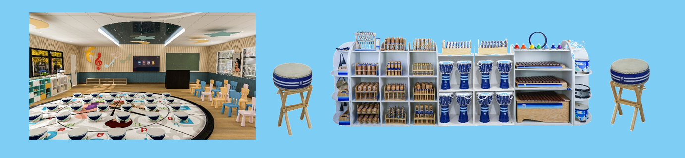教室設(shè)計定位主要是面向零基礎(chǔ)的中小學生,重點培養(yǎng)學生對于打擊樂的學習興趣,增加對打擊樂相關(guān)知識、內(nèi)容的了解,配以數(shù)字化的音樂教學設(shè)備,提高老師的教學效率。