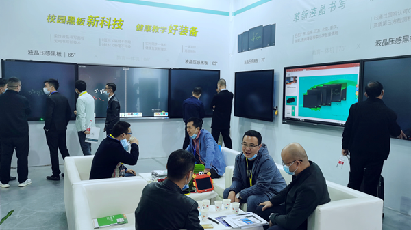 多地教育專家和人士光臨好易寫展臺,體驗聽取方案講解,詳細了解廣東、山東、河北、貴州、湖南等地的液晶壓感黑板項目建設情況,交流共建共享可行性,探討為服務智慧教育一起努力。