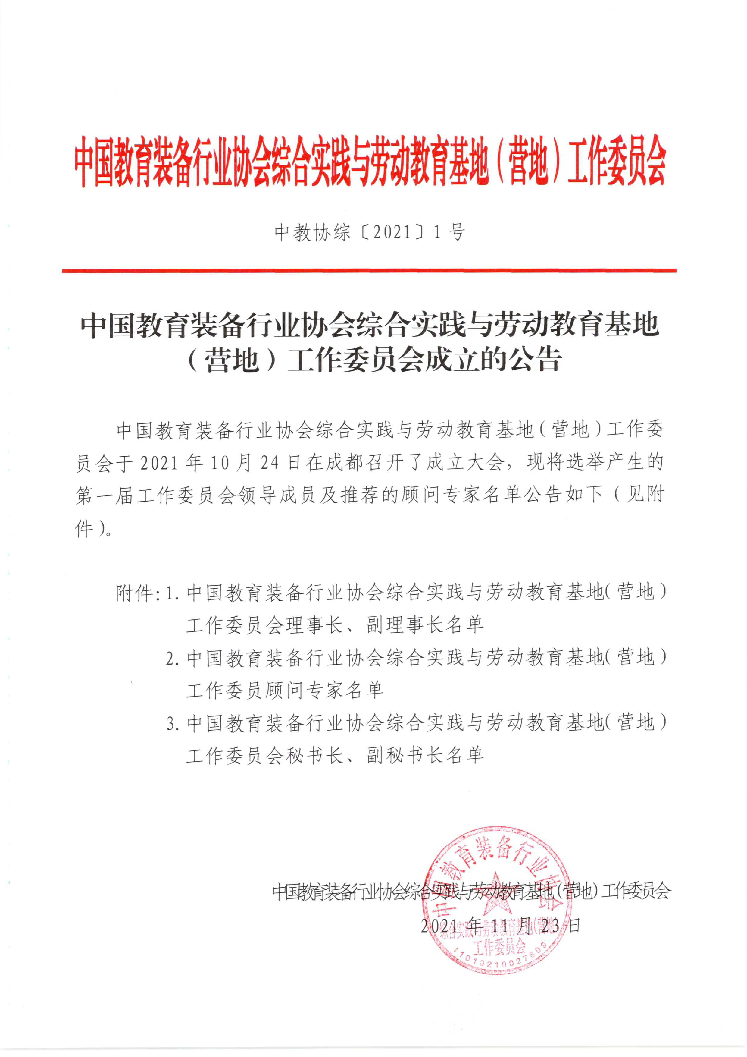 中國教育裝備行業(yè)協(xié)會綜合實踐與勞動教育基地(營地)工作委員會成立的公告