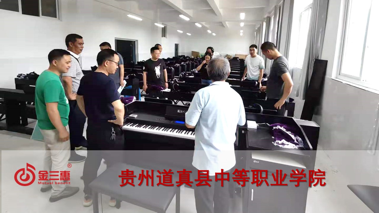 貴州道真縣中等職業學院的電鋼琴教室正式開始使用,本校數字化音樂教室由北京金三惠科技有限公司負責提供、安裝、培訓。