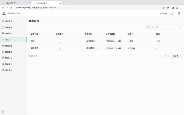 在首頁,點擊右上角“個人中心”,進入個人中心后,在“我的證書”查看證書獲取情況。