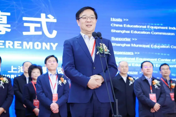 (教育部關心下一代工作委員會常務副主任、中國教育裝備行業(yè)協(xié)會專家委員會主任王富宣布2023中國國際教育裝備(上海)博覽會開幕)