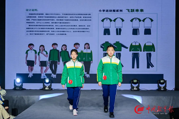 活動以“衣以載道、以美育人”為主題,現(xiàn)場展示包含中小學運動裝、中小學制服裝、教師職業(yè)裝五個類別共計300個系列作品。