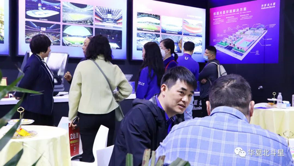 華夏北斗星總經(jīng)理向麗女士與嘉賓探討體育照明系統(tǒng)