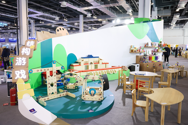 本次博覽會特別設置了“學前教育裝備展示區”。學前教育展區以“幼育、幼學、幼趣”為主題,以“一個小幼苗的成長”為設計主線,設置了“托育教室”“閱讀視聽”“衛生體測”“音樂戲劇”“益智體驗”“結構游戲”6大體驗活動區,活動內容豐富多彩。