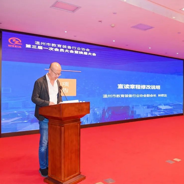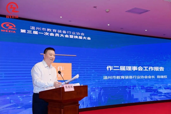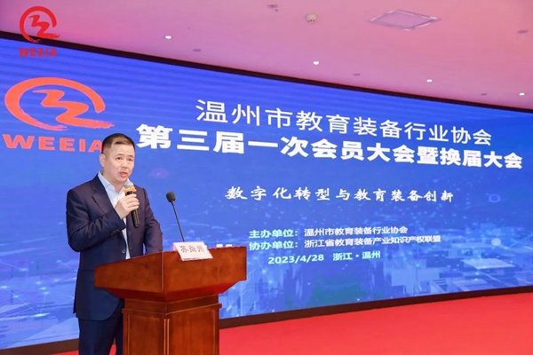 最后,他希望新一屆領導班子能帶領溫州市教育裝備發揚溫州四千精神,不斷提高協會自身的服務能力和影響力,推動教育裝備創新發展,努力開創協會和行業高質量發展新局面,為高質量教育做出新貢獻。