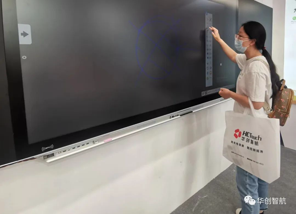 本次展會,華創(chuàng)智航攜手合作伙伴,在現(xiàn)場展示了以納米銀電容智慧黑板為主的多款設備。華創(chuàng)智航納米銀電容智慧黑板提供86、98和110三個尺寸可選,滿足不同教室的需求。純平外觀、高清顯示,178°超廣視角,看得更清晰更舒適。全屏可支持板書,超大書寫尺寸,具有一鍵開關機、定時開關機等功能,軟件兼具易用性和包容性,多種書寫筆、互動工具、教學工具、可實操資源隨調(diào)隨用;強大的備授課軟件,輕松預設并呈現(xiàn)趣味互動課堂。