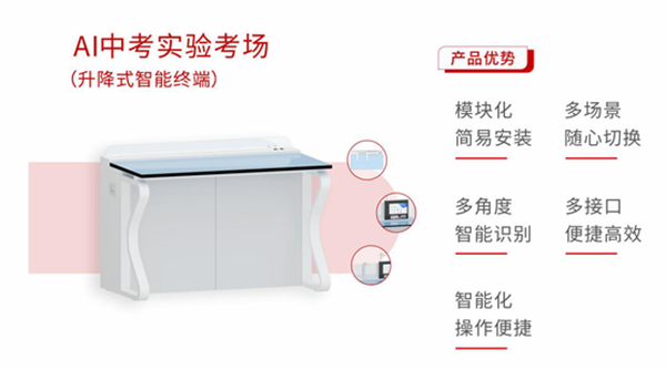 廣視通自主研發的AI中考實驗考場(升降式智能終端)是集教學與考試于一體的AI中考實驗考場的新產品,本產品是在原有的便攜式智能終端的基礎上進行升級的新產品。