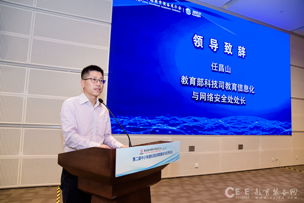教育部科學(xué)技術(shù)與信息化司教育信息化與網(wǎng)絡(luò)安全處處長(zhǎng)任昌山,教育部學(xué)校規(guī)劃建設(shè)發(fā)展中心原主任李平,中國(guó)教育裝備行業(yè)協(xié)會(huì)秘書長(zhǎng)李瀛,教育部教育技術(shù)與資源發(fā)展中心(中央電化教育館)原處長(zhǎng)劉俊波,中國(guó)教育裝備行業(yè)協(xié)會(huì)教育信息化裝備分會(huì)副理事長(zhǎng)、教育部教育技術(shù)與資源發(fā)展中心(中央電化教育館)處長(zhǎng)孫默,天津市教育科學(xué)研究院教育技術(shù)與信息化研究中心主任何穆彬、副主任吳勇等領(lǐng)導(dǎo)嘉賓出席,來(lái)自全國(guó)的三百余名教師代表參加會(huì)議。會(huì)議由中國(guó)教育裝備行業(yè)協(xié)會(huì)教育信息化裝備分會(huì)理事長(zhǎng)、(中央電化教育館)原副館長(zhǎng)蔡耘主持。