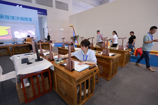 展會上,龍美訥納漁帶來智慧書法教室、智慧美術(shù)教室、智慧沙畫教室、非遺手工教室四類美育教室數(shù)字化教育裝備,可滿足中小學(xué)及高校實(shí)訓(xùn)室的美育課程教育教學(xué)需求。