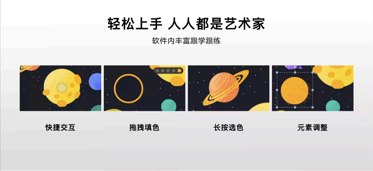 天生會畫App同步帶來AI智能選區(qū)、快捷操作手勢、一筆成形等眾多智慧功能,賦能便捷繪畫體驗,讓藝術(shù)創(chuàng)作更高效。全新AI智能選區(qū)功能,輕松摳出畫作中的元素。快捷操作手勢支持雙指撤銷、三指重做、單指長按拾色等豐富交互手勢,極大地提升了軟件的易用性和操作效率。一筆成形不僅可以輕松繪制標準圖形,更支持曲線任意修正。該軟件還內(nèi)置不少創(chuàng)作者都喜愛的繪畫工具——柳葉筆,助力用戶進行高效出色的繪畫創(chuàng)作。