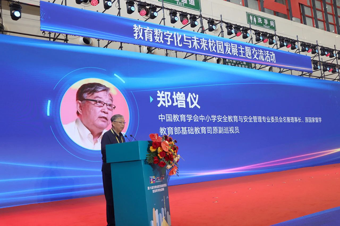 中國教育學會中小學安全教育與管理專業委員會理事長李雯向現場嘉賓作了“數字化賦能校園安全”主題報告,她指出:利用人工智能、大數據、物聯網等數字化技術,為學生構建更人性、智能、輕松、便捷的在校生活環境,將是未來教育數字化發展的重要方向。