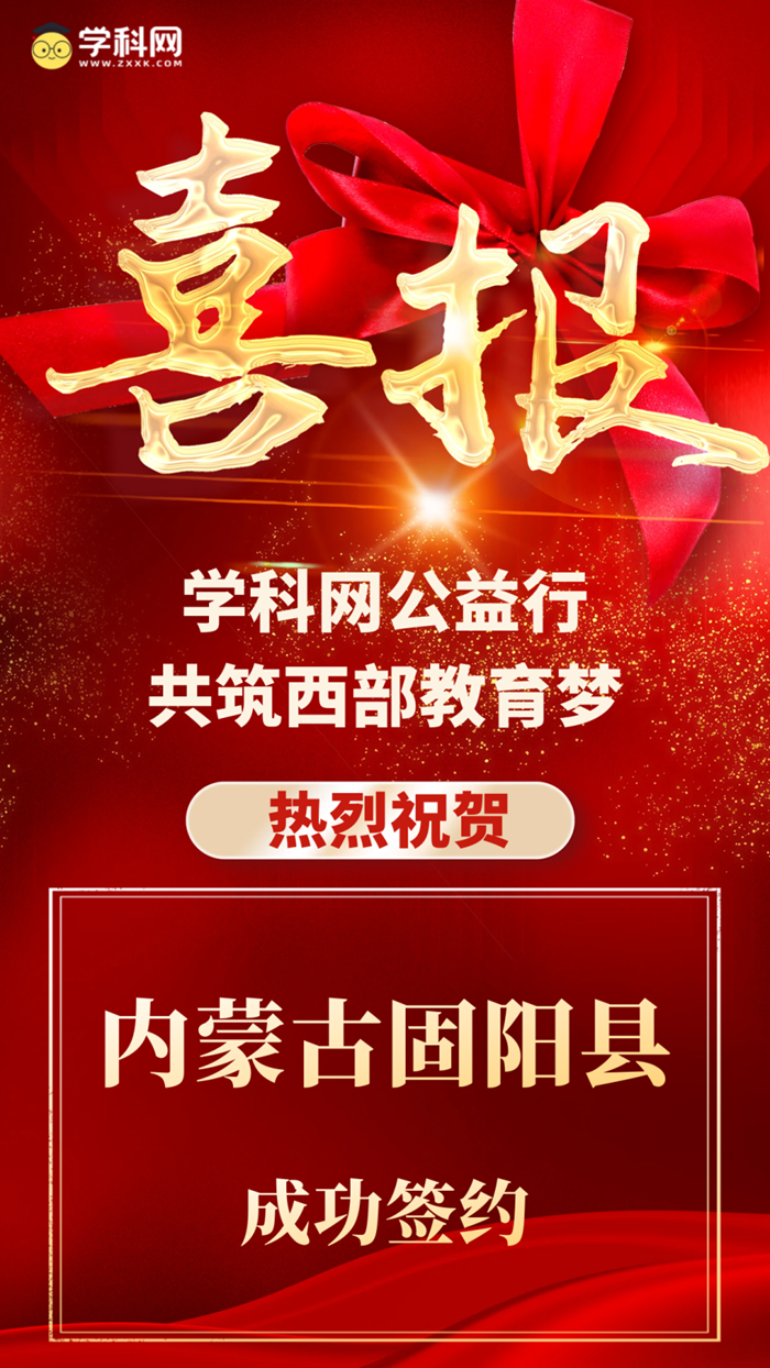 近日,學科網(北京)股份有限公司與內蒙古自治區固陽縣教育局達成公益合作,為固陽縣5所小學的433名教師免費開通了為期一年的小學網校通、E卷通服務,這一舉措是學科網“2024公益計劃-學科網公益行共筑西部教育夢”活動的重要組成部分,旨在助力西部地區教育事業擴優提質,用知識的力量成就更多孩子的夢想。