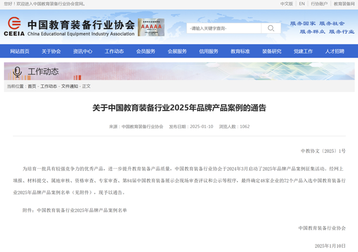 為培育一批具有較強競爭力的優秀產品,進一步提升教育裝備產品質量,為我國教育裝備行業高質量發展積蓄新動能,中國教育裝備行業協會舉辦品牌產品案例征集活動。