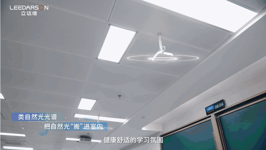 此外,教室的護眼燈光如早上十點鐘的自然光一樣明亮舒適,并通過專業(yè)照明設(shè)計營造健康光環(huán)境,在保護視力的同時輔助多媒體錄/直播效果更優(yōu),為師生營造出沉浸式學(xué)習(xí)氛圍。