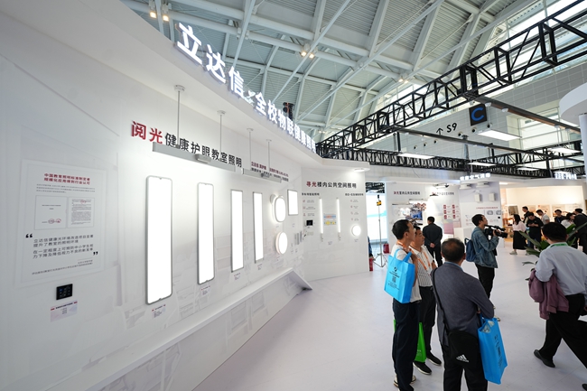 展會現場,立達信打造沉浸式健康校園場景體驗區,涵蓋全校物聯中心、健康教室、擴聲教室、護眼小屋等展示區域,全面呈現未來校園的智慧健康圖景。其新推出的近距式柔光黑板燈首次對外發布,以創新光學設計,減少黑板反光,為師生提供清晰、舒適的視覺環境,有效呵護師生視力。