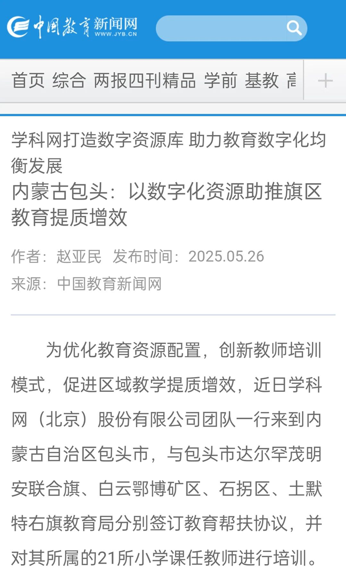 學(xué)科網(wǎng)與內(nèi)蒙古包頭四家旗區(qū)教育局達(dá)成教育幫扶合作,以數(shù)字化助力教育提質(zhì)增效