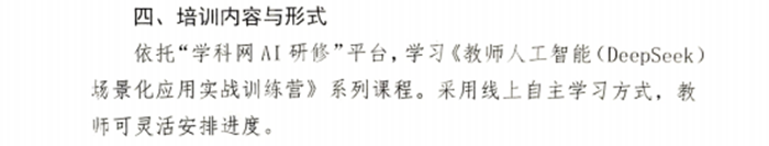 基于鞏留縣教育局的教師提升需求,『學科網AI研修』為鞏留縣打造《教師人工智能(DeepSeek)場景化應用實戰訓練營》,通過AI工具在日常教學與教師工作場景中的實戰應用,幫助一線教師提升AI教學技能,加速教師數字化轉型,提升教師數字素養與工作效能。