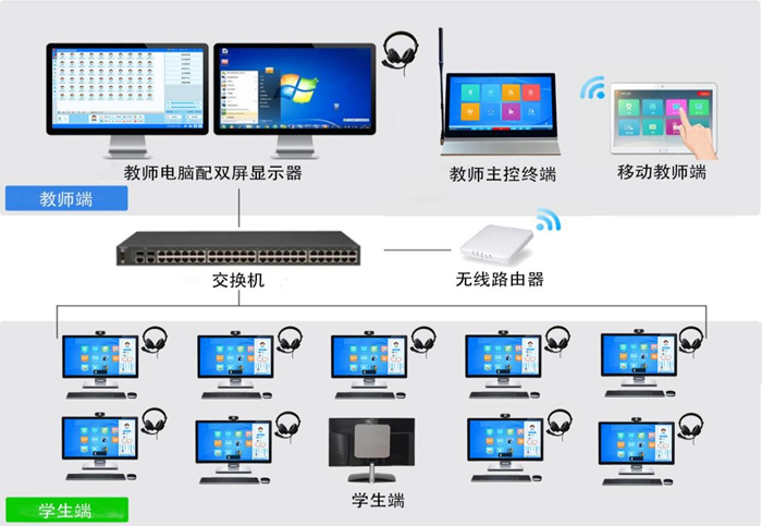 系統(tǒng)特點(diǎn):學(xué)生終端機(jī)數(shù)碼設(shè)計(jì),采用DSF數(shù)字信息處理技術(shù),采用5.1寸大屏幕液晶顯示。外語學(xué)習(xí)自助餐模式,學(xué)生可根據(jù)自身情況選擇外語資料,并在學(xué)生端進(jìn)行測試。“MF3 Database”豐富齊全的語言素材庫,采用當(dāng)今世界最主流的MP3/WAV音頻文件格式,用很小的存儲空間保存海量音頻素材,學(xué)生可隨時(shí)調(diào)取。查字典單詞標(biāo)準(zhǔn)讀音屏幕點(diǎn)詞翻譯(電子辭典模糊查詢),當(dāng)學(xué)生閱讀文本遇到生詞時(shí),可用方向鍵移動(dòng)光標(biāo),即可翻譯。口語錄音超級數(shù)字錄音,錄音時(shí)間無限制、自主錄音口語訓(xùn)練,統(tǒng)一由教師機(jī)硬盤保存。