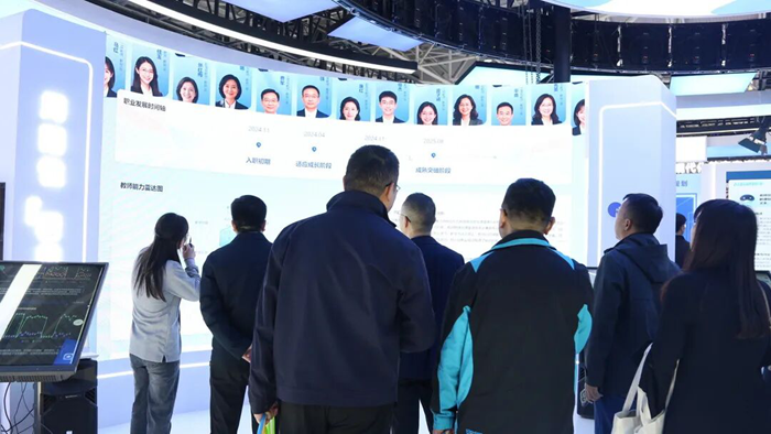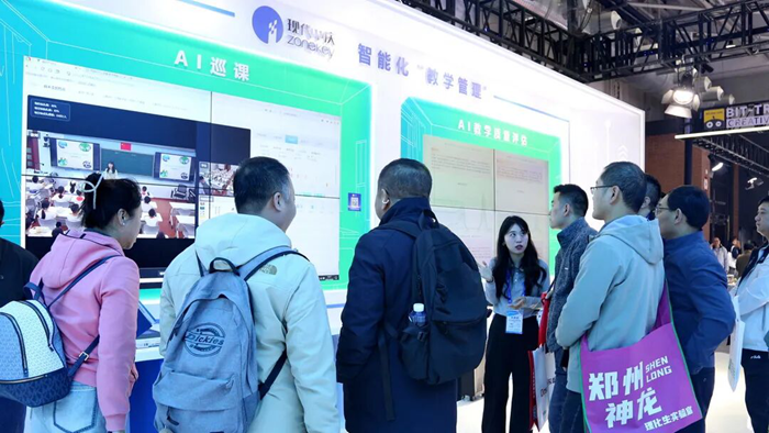 現(xiàn)代中慶參展并打造的“未來(lái)教師成長(zhǎng)AI體驗(yàn)中心”,圍繞成長(zhǎng)陪伴、智能管理、周期畫像三大模塊的諸多精彩體驗(yàn),充分展現(xiàn)了AI賦能教師專業(yè)發(fā)展全周期的創(chuàng)新應(yīng)用,成為展會(huì)關(guān)注焦點(diǎn)。