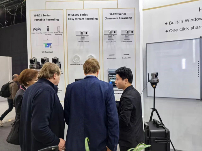 文香本次展出的AI錄播系列產品,以“AI賦能教學場景”為核心,構建了常態化錄播、集成式錄播、便攜式錄播三大解決方案,全面覆蓋從日常教學到移動教學、從校內課堂到異地交流的多元需求。