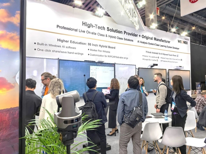 2026年2月3日至6日,全球最具影響力的視聽技術盛會——ISE2026在西班牙巴塞羅那國際會展中心隆重舉行。文香(WenTech)以“AI賦能·教育共生”(AIEmpowerment,EducationalSymbiosis)為主題盛裝亮相,全面展示其在人工智能與教育融合領域的前沿成果。此次參展,文香帶來了廣受關注的AI教育全場景方案,還發布搭載AI技術的智能交互一體機與全球首創的AI記憶折疊黑板,向世界彰顯中國智造的科技深度與生態厚度。