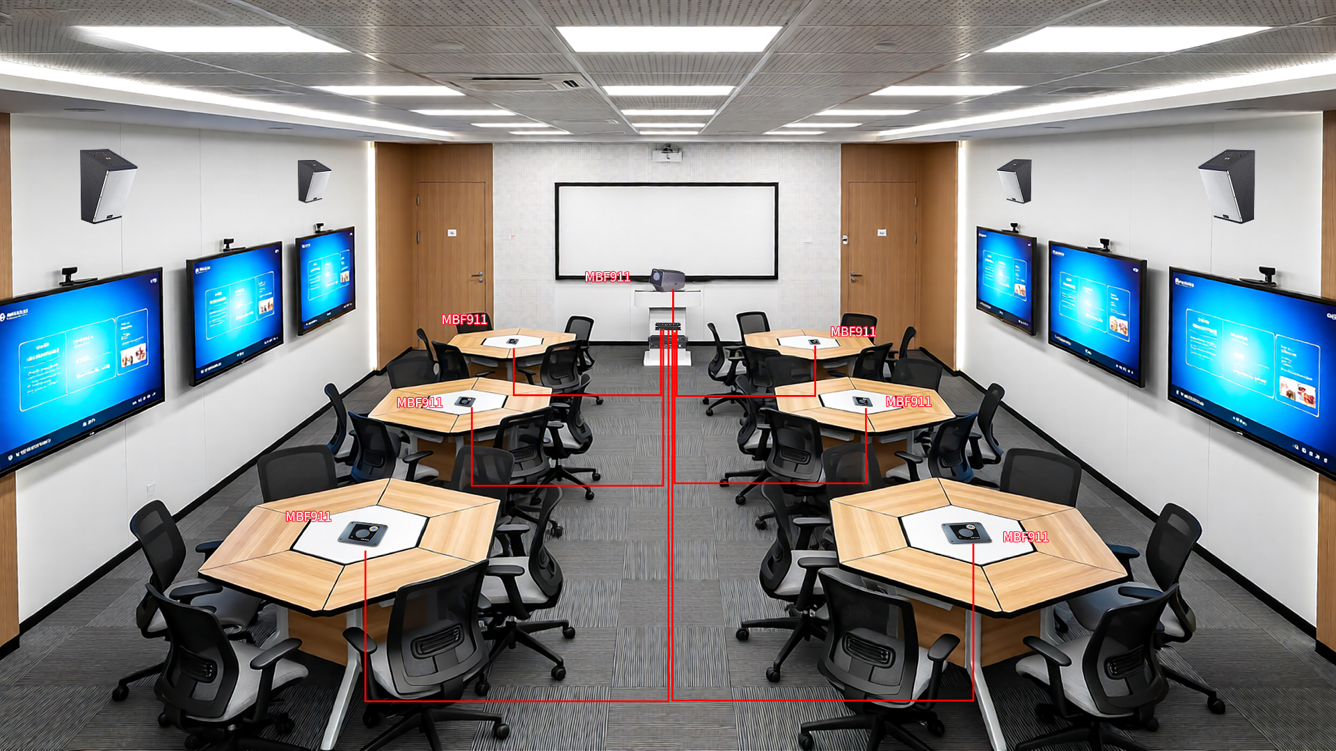 分布式無線話筒智能管家|分組研討型智慧教室場景一:設備裝在講臺機柜里